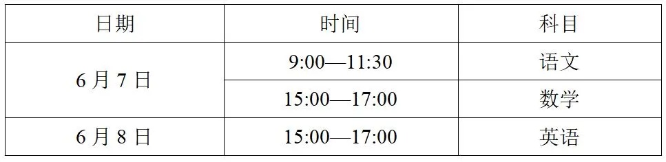 文化课实行全省统考,试题由省教育考试院依据现行职业高中教学大纲命制。考试时间安排如下: